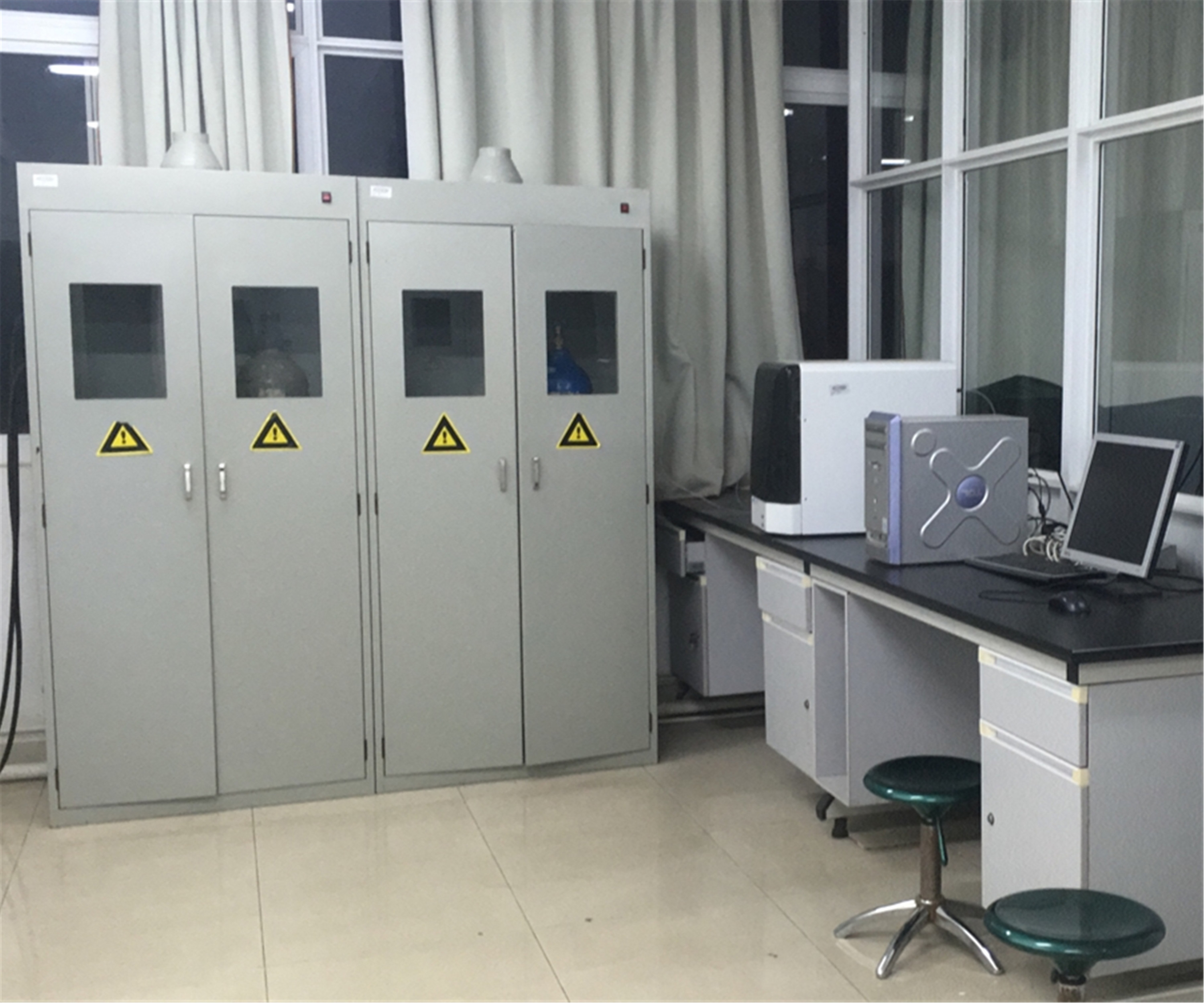 大型仪器实验室常规检测仪器,包括安捷伦710+ETHOS1等离子体发生光谱仪、安捷伦640-IR傅里叶变换近红外光谱仪、北京瑞利WFX-130A原子吸收分光光度计、美国戴安ICS-90离子色谱仪、青岛普仁PIC-10离子色谱仪、岛津GC-14气相色谱仪、美国WATERS515液相色谱仪、美国14-9000-100TOC分析仪、德国WTW OxiTop IS12数字式BOD测定仪、德国WTW Photo Flex水质分析便携实验室、北京普析TU-1810PC紫外可见分光光度计等多种大型进口与国产精密分析仪器。
